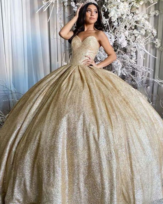 Sparkly Champagne Gold Quinceanera Dresses Ball Gowns Sweetheart Neckl Angelaweddings